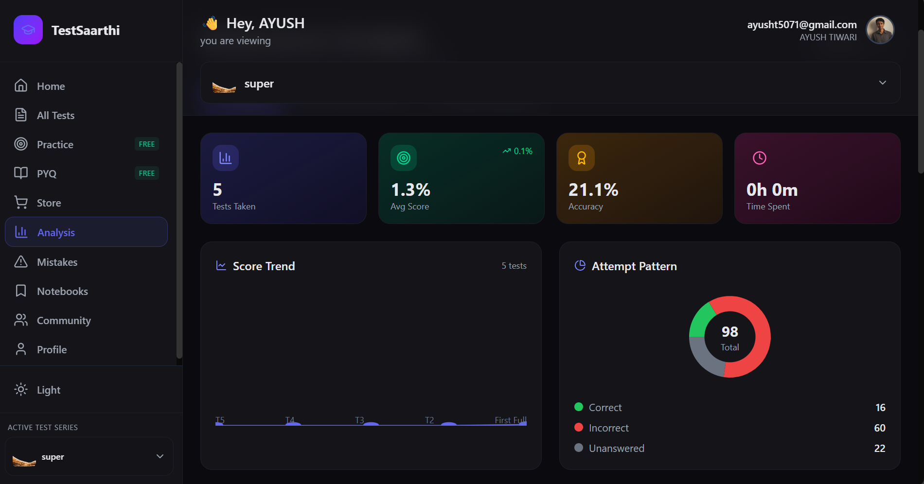 The analytics dashboard showed me exactly where I was losing marks. The improvement in my scores was visible within weeks of joining.